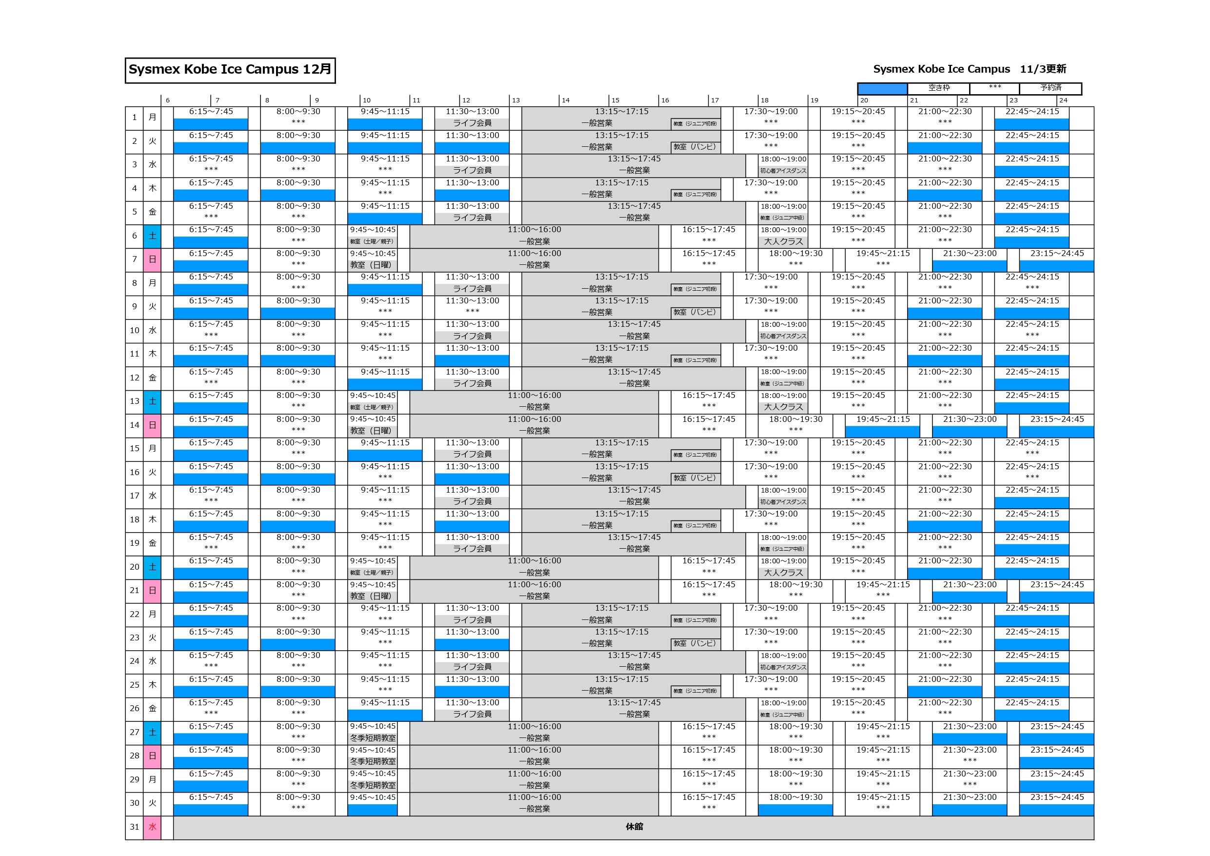 貸切利用に関する詳しい内容や注意事項については、「Sysmex Kobe Ice Campus 貸切利用規約」をご確認ください。